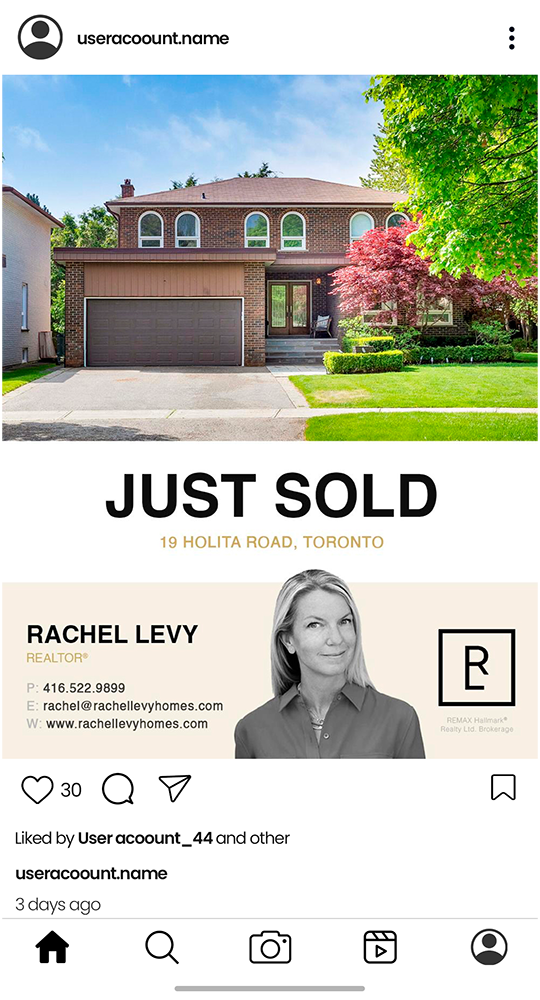Stand out online with fully branded, custom-designed social media templates. Perfectly aligned with your personal style and brokerage identity, these templates make it easy to post consistently, look professional, and capture more attention on every platform.